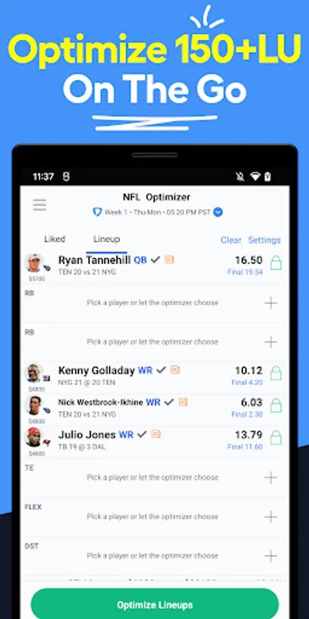 LineStar® helps you make the best possible lineups for your favorite daily fantasy sports. Including NFL, NBA, MLB, Nascar, PGA, WNBA, NCAAF, NCAAB, and CS:GO, LOL.