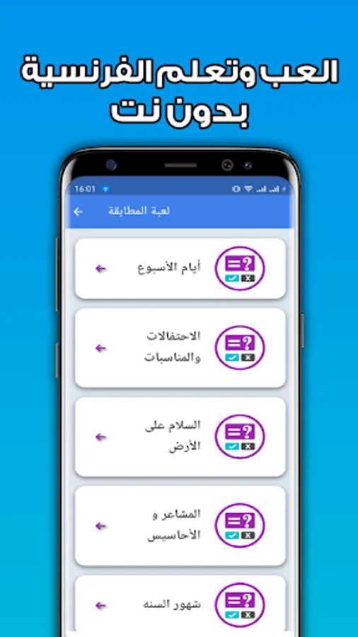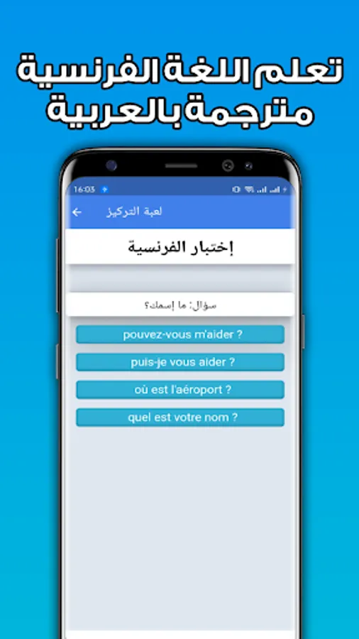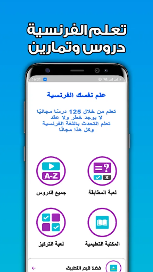 For this, we have provided you with a new update for the application of learning the French language with audio and video, which includes simplified explanations for lessons in the French language, audio clips for learning French by sound, in addition to a paragraph about playing and learning the French language through the matching game and the focus game.