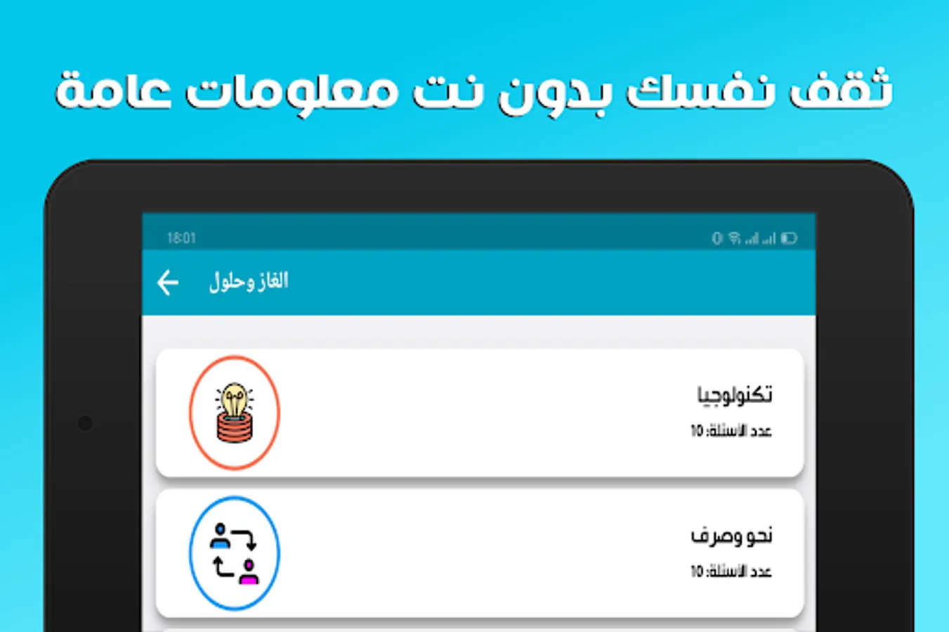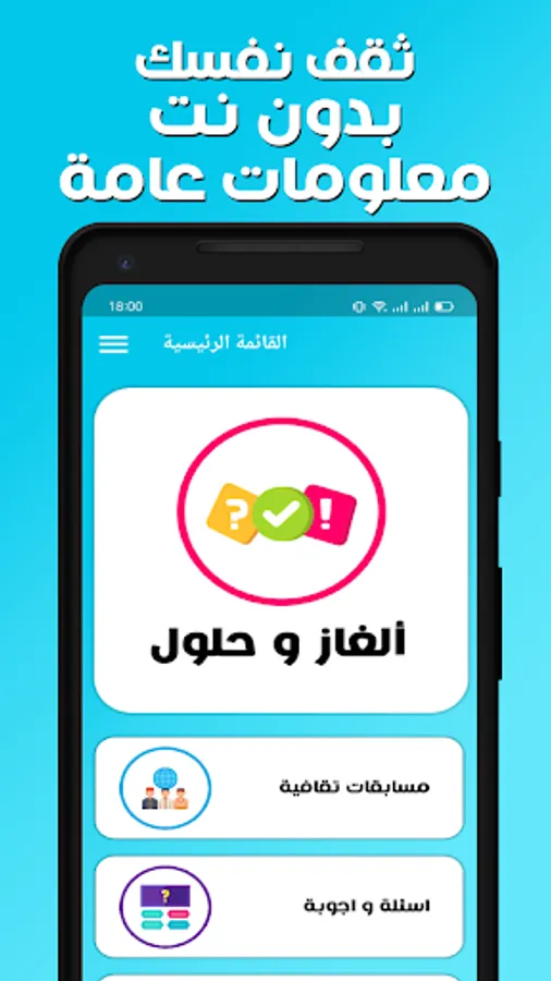 The application includes cultural competitions without the Internet and many diverse and different sections, including a riddle and a word that test your intelligence *