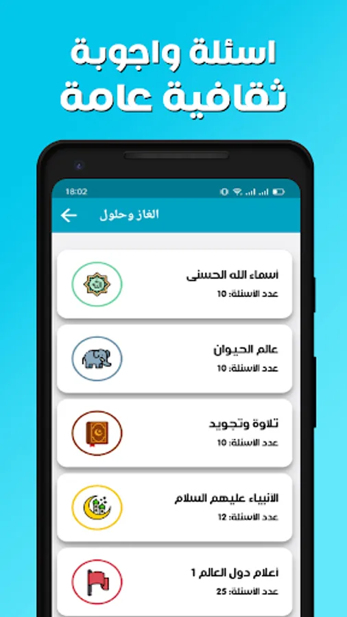 This program includes an encyclopedia of information in the form of question and answer games without the net for adults to spread cultural awareness among people in all fields. The most important goal of the application is to enable dear user to test your general culture, spread scientific awareness and play competitions who will win in Arabic with friends
