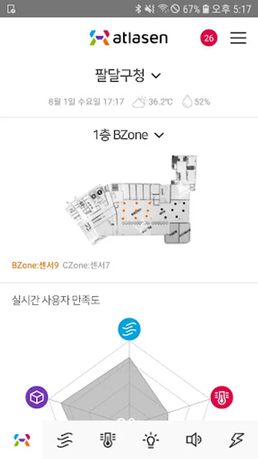 Atlasen collects and analyzes real-time IEQ data using an IoT multi-sensor module, presents results from the diagnosis in a user-friendly score and graph format, and improves occupant comfort and energy savings.