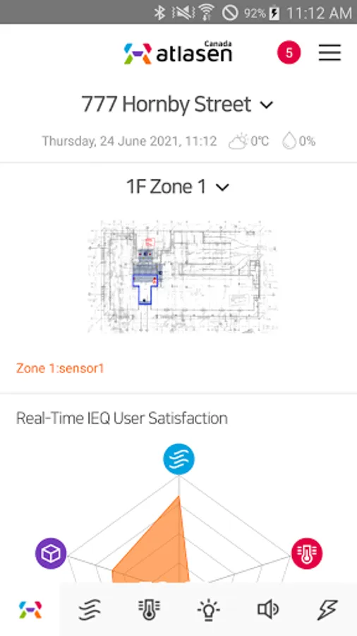 Atlasen collects and analyzes real-time IEQ data using an IoT multi-sensor module, presents results from the diagnosis in a user-friendly score and graph format, and improves occupant comfort and energy savings.