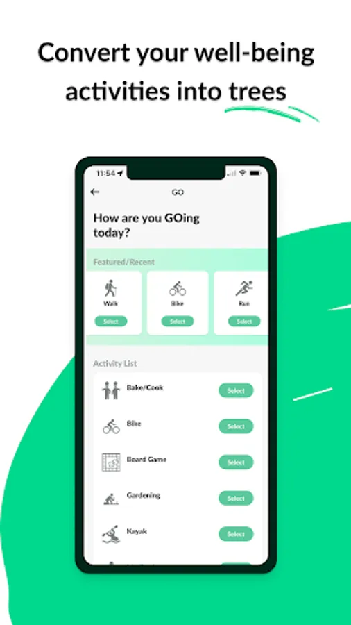 Want to convert your well-being activities into trees or connect with your colleagues in a corporate challenge? Let's GO!