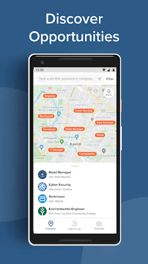 AtlasJobs is a new kind of job search that allows jobseekers to explore an interactive opportunity map. Jobseekers can use key words and filters to change the kinds of opportunities the map is displaying. For example, if you wanted to see “engineer” positions around the globe in down the street, you simply type “engineer” in to the search bar. As you move the map the jobs in the list view will adapt to wherever you are looking.