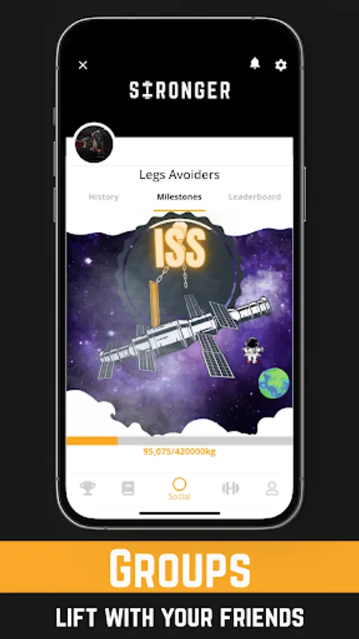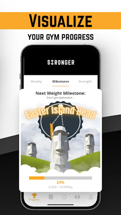 Stronger creates challenges to help you stay motivated. Each week there’s a new challenge to help you push yourself. How many T-rexes can you lift in a week? You can work towards lifting an Easter Island head.