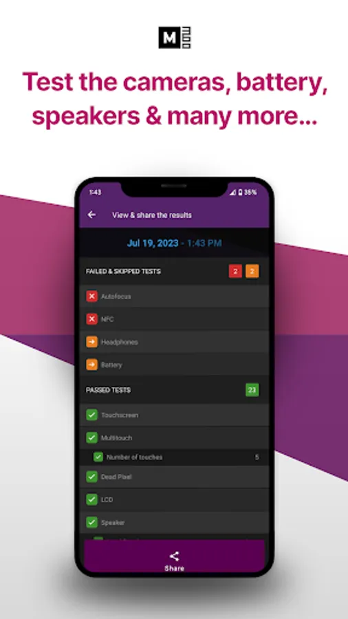 You can use M360 Diagnostics to test most components of a mobile phone or tablet, to check if everything is working well.