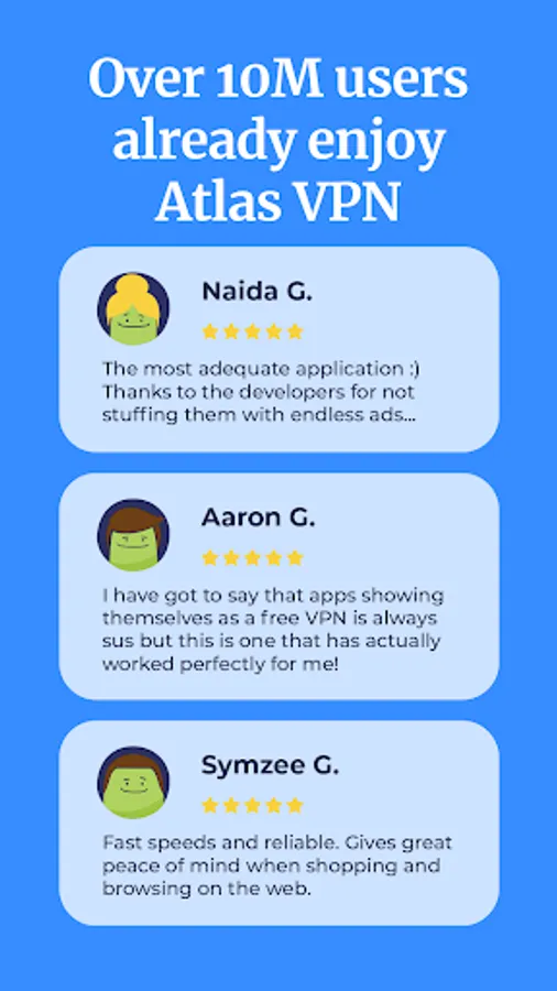 Atlas VPN is trusted by 9 million users worldwide and new ones join us daily. Our VPN has been reviewed and featured in CNET, PCMag, TechRepublic, TechRadar, Forbes, and The Guardian, to name a few!