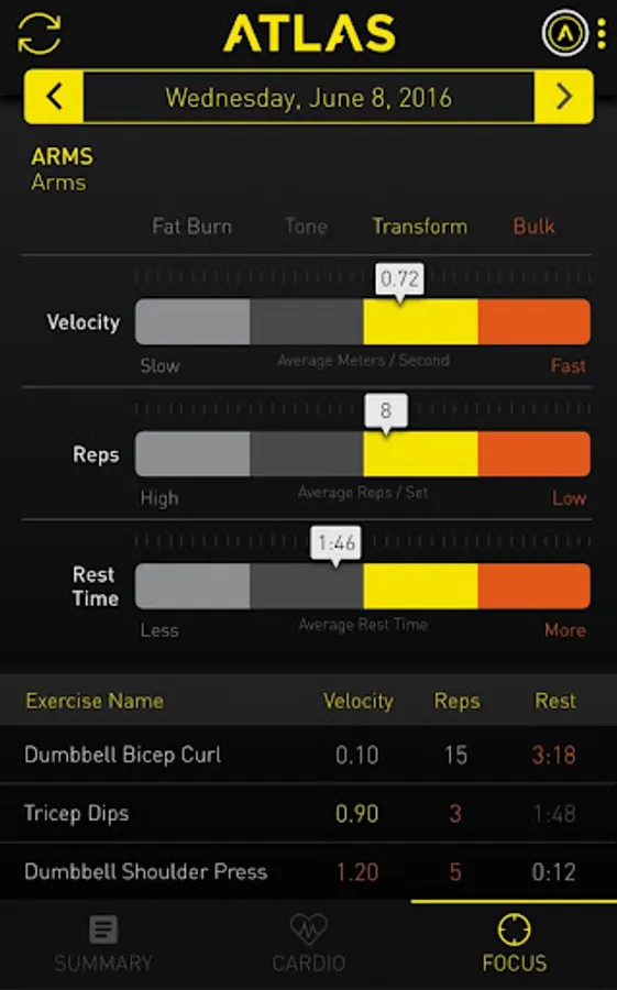 STRENGTH IN NUMBERS. Sync your workout journal effortlessly from the Atlas Wristband with this Atlas Wearables app. In this app you can dive deeper into advanced fitness analytics when you need it most. View muscle focus, heart rate data, calories burned, form evaluation and tunable metrics such as power, stability and velocity. There’s no magic bullet for health and fitness, and you deserve feedback and guidance on what matters to you.