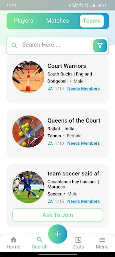 ATLATIK's search and filter feature makes it among the best apps for athletes by simplifying the process of discovering for you. You can easily find users, matches, and teams you prefer to join and engage with. It helps you effortlessly connect with the right sports enthusiasts and events. Also, you can easily search for specific individuals, matches, or teams with ATLATIK.