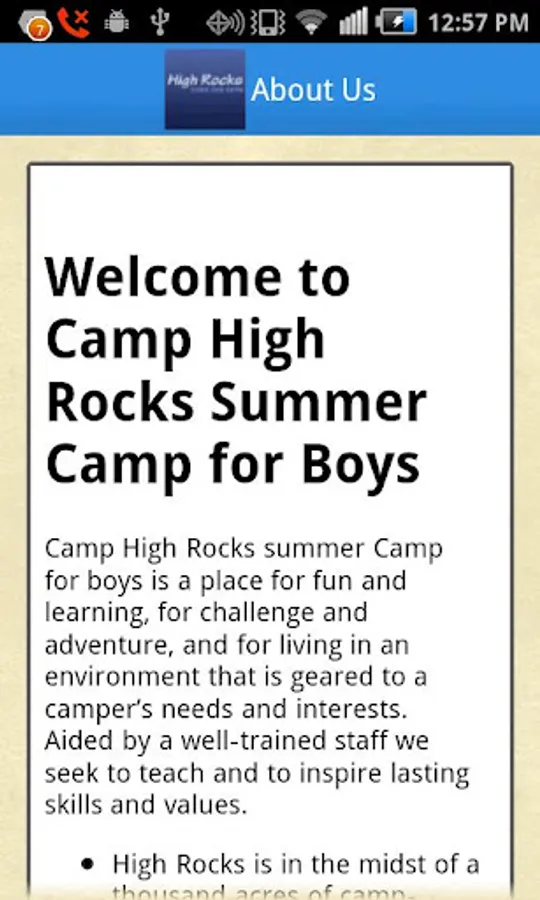 Camp High Rocks summer Camp for boys is a place for fun and learning, for challenge and adventure, and for living in an environment that is geared to a campers needs and interests. Aided by a well-trained staff we seek to teach and to inspire lasting skills and values.
