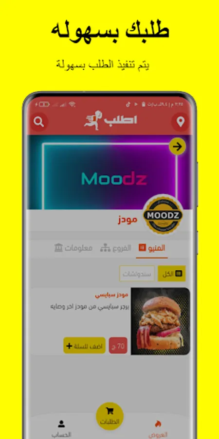 The Otlob application delivers delivery between the merchant and stores in your area so that you order all your orders while you are in your place without any effort