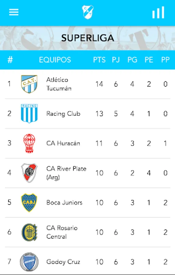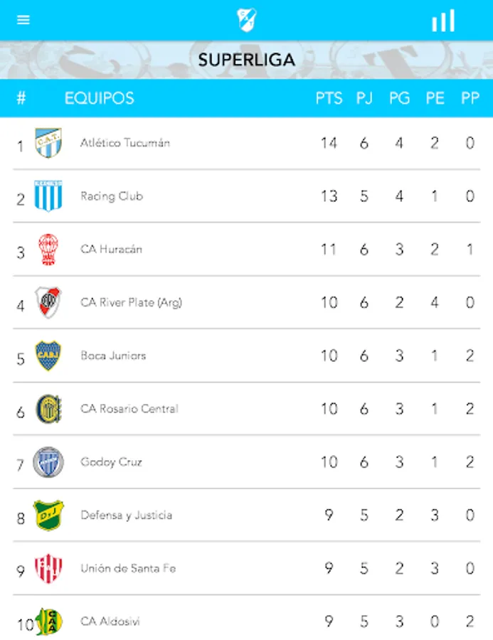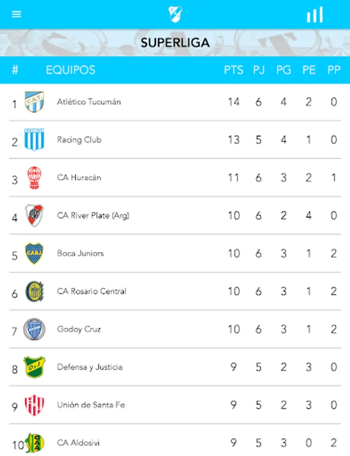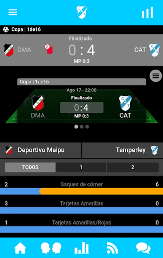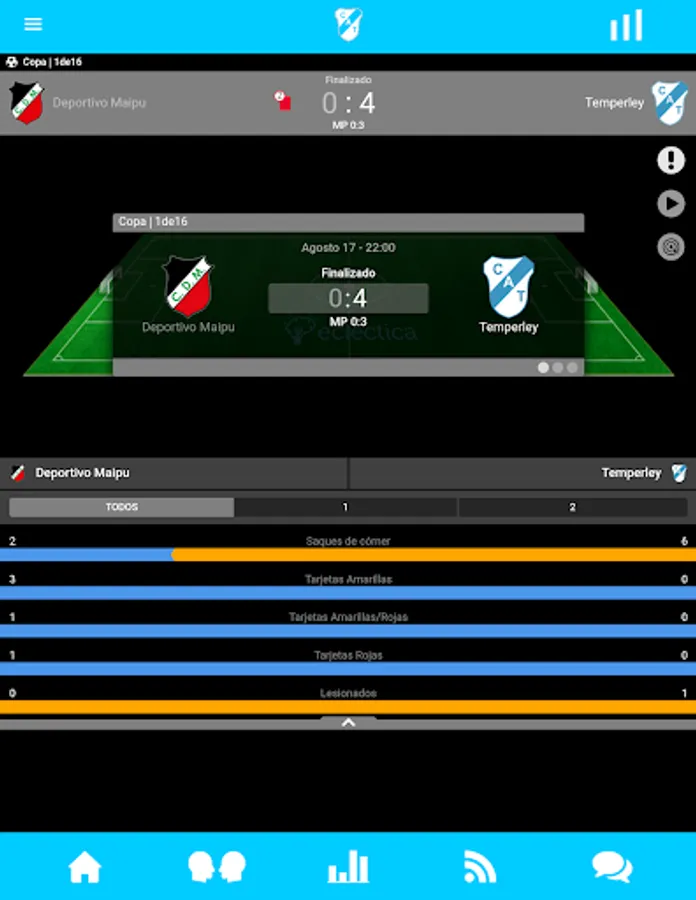 I followed live the animation of the matches, review the table positions, calendar, statistics, news and much more with the official Club Atlético Temperley APP.