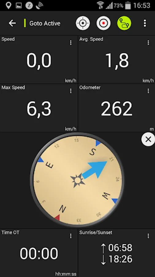 • Tripmaster with fields for odometer, average speed, bearing, elevation, etc.