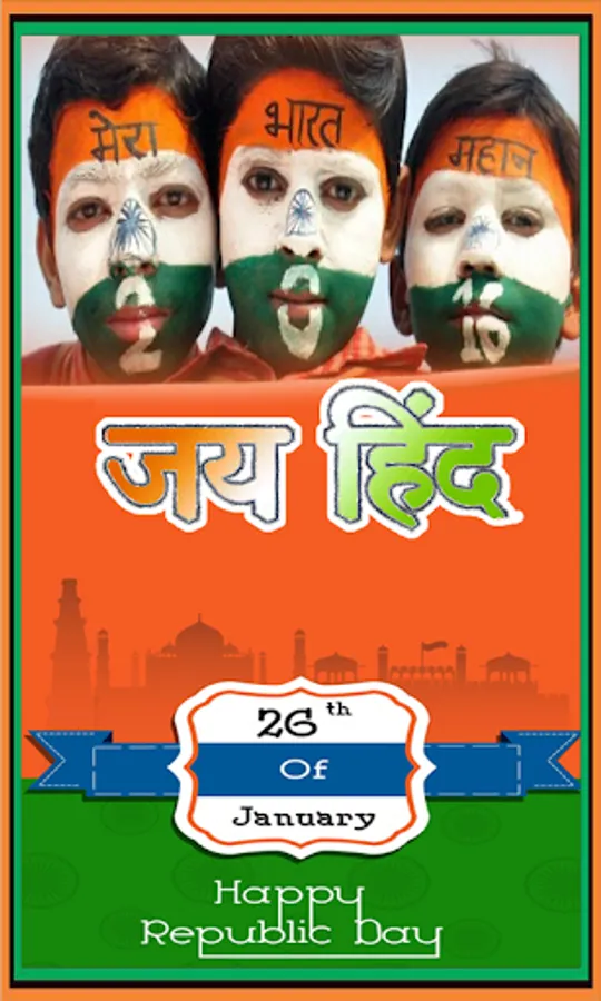 Try new collection of patriotic purpose developed new app "Republic Day Photo Frames" FREE Download on Android.The new Indian constitution was sketched and approved by the Indian Constituent Assembly and decided to celebrate it on 26th of January every year as India became a republic country.Wishing U a very "Happy Republic Day Frames-India Greetings.Wish You A Happy Republic Day with new & latest India Patriotic Profile Maker.Send India Republic day ,Images and pictures quickly to share with your friends and relatives.You can use republic day frames to share on social media network.We are presenting you HD collection of Republic Day Photo Frames.we have designed big collection of Republic Day Photo Frames for you.Given here is a great collection of tricolor frames.For creating Republic Day photo frames you can select your best photos,Republic Day of India is a National festival of India widely celebrated by Indians all over the world.So Create photos here and share with your friends and families.You can arrange the photos in order with the perfect Republic Day Photo backgrounds, frames, Decorate your memorable pics in your own style & Beautify your moments with Republic day photo frames.To share wishes in a smart way with a new style like sending our pics by framing in a new way.For this purpose i have a best application named "Republic Day Photo Frames".This app have multiple photo frames to use.