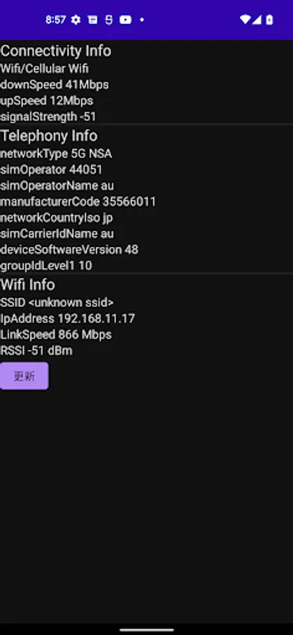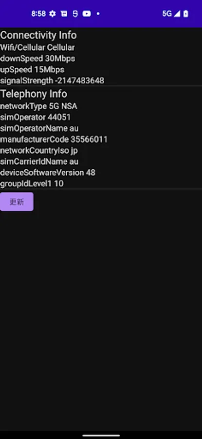 -Cellular communication type (5G SA, NSA, LTE), signal strength