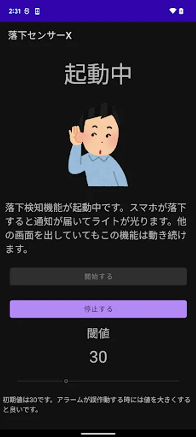 If you run this app, it will detect that your smartphone has been dropped and notify you.