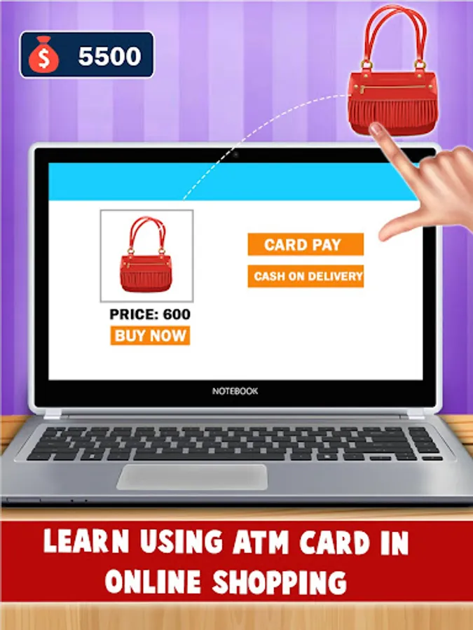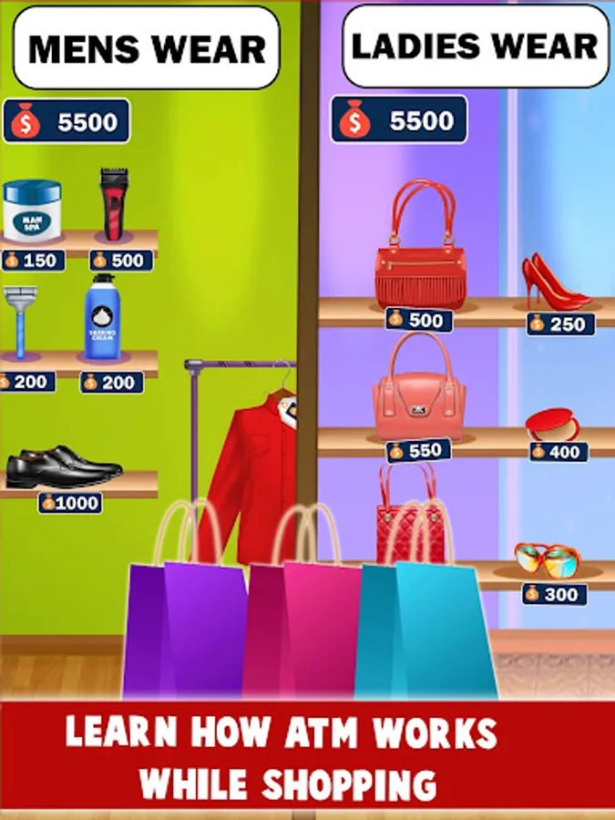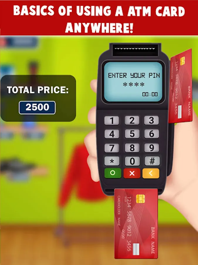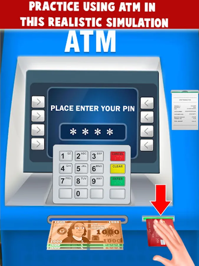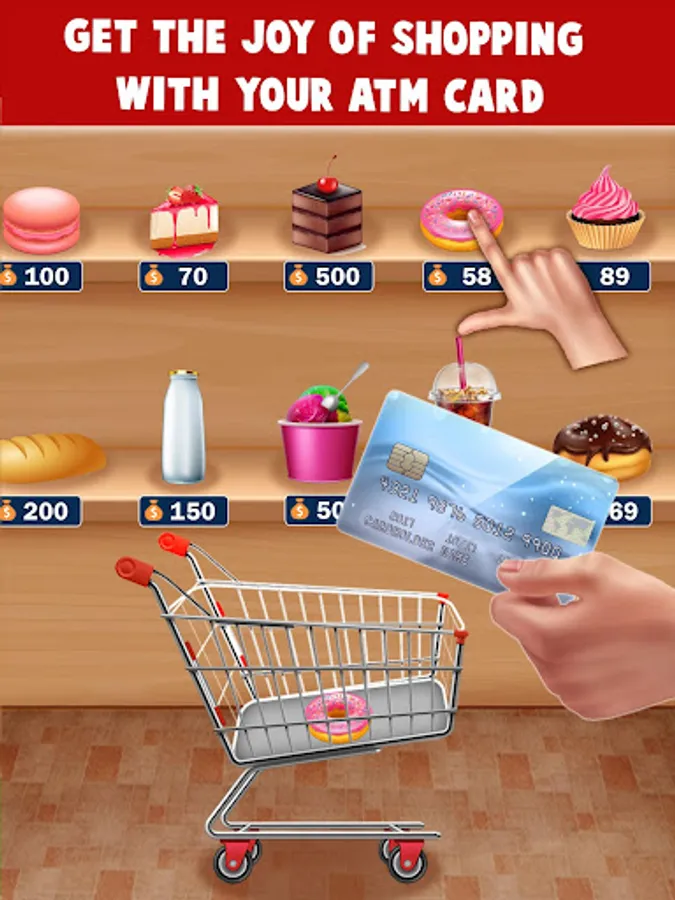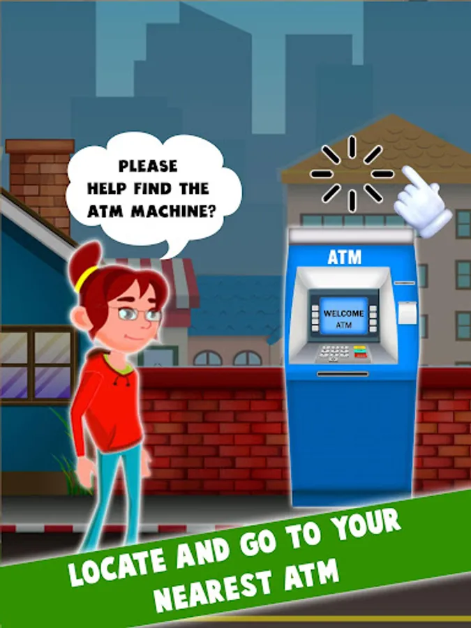 Welcome to the Virtual Bank ATM Learning Simulator! Allow us to make learning about ATM machines fun for you.. ATM Learning Simulator Game will give you a chance to learn to withdraw money from the ATM cash machine and go to supermarket mall to purchase anything you want using your ATM card.
