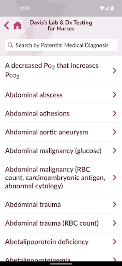 Tests and procedures are listed in alphabetical order by their complete name for quick reference. The search feature allows fast searches by abbreviation, synonym, disease/disorder, specimen type, or test classification.