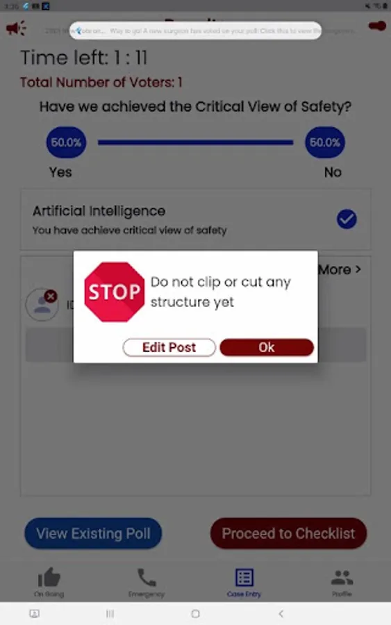 1. To develop a user-friendly application to help surgeons identify the Critical View of Safety by the use of a poll which will be answered by his co-surgeons and the Artificial Intelligence (AI). Zero Bile Duct Injury App aims to prevent any bile duct injuries.