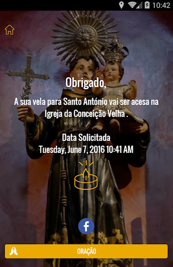 Simply access the application and create your account, then you only have to fulfill four steps; choose the church, the Holy choose, choose the date, choose the amount of candles, finally, click "LIGHT CANDLE." In the chosen day and time will light up the candles to their saint.
