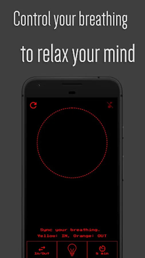 - In/out: Synchronize your breathing with the intensity of the light. Yellow means inhale, orange means exhale.