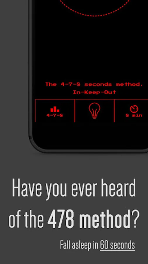 - 478: This method is intended to slow your heart rate and calm your mind. It has 3 steps: inhale, hold, exhale. Just follow the three different colors.
