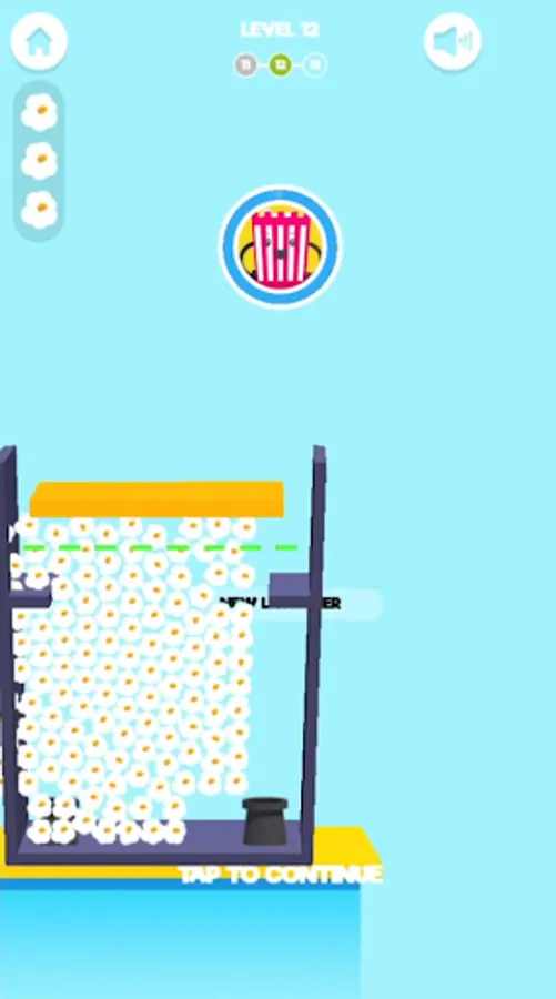 In the corn popcorn game, your objective is simple yet challenging: tap and hold on the screen to release popcorn and fill various objects until they reach the given limit. But beware! The popcorn must not fall out, or you'll lose the popcorn game.