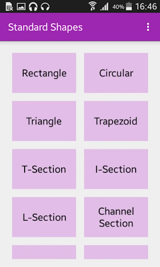 Standard:- Select from a list of standard shapes such as I, C, L, Rectangle...