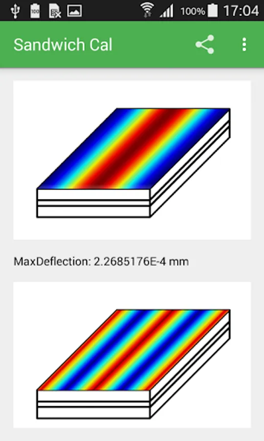 Analytical solution for the above type of plate governing equations was compiled for various type of plate, boundary, loading conditions and is used for the plate performance prediction. The results predicted by Sandwich Calculator are also compared with numerical simulations. The analytical results predicted by app matches closely with the industry standard numerical finite element analysis solver results.