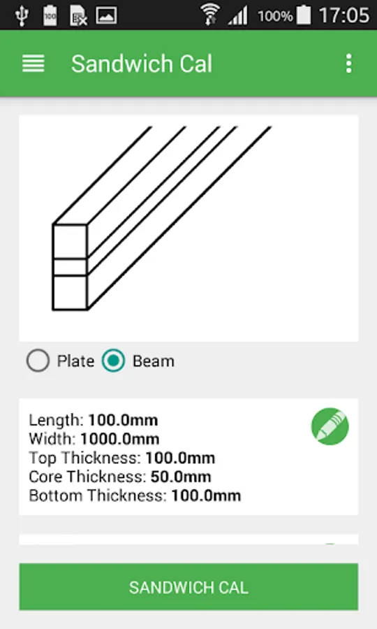 2. Enter Sheet length, width and skin, core Thickness dimensions.