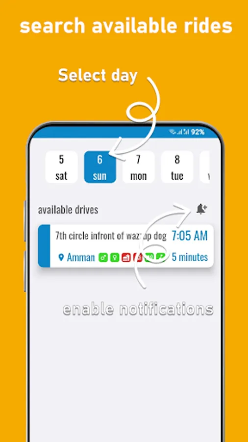 - subscribe to a specific day to get notified when someone has offered a ride.
