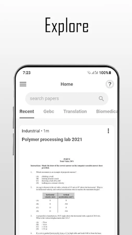 Past Papers Lands allow users to share, read and explore exams past papers. You can explore either by the school or recent.