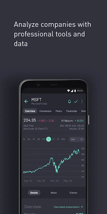 Make informed investment decisions with cutting-edge tools including valuation metrics, historical financials, detailed analyst consensus estimates, SEC filings and transcripts, corporate events, curated news, and more.