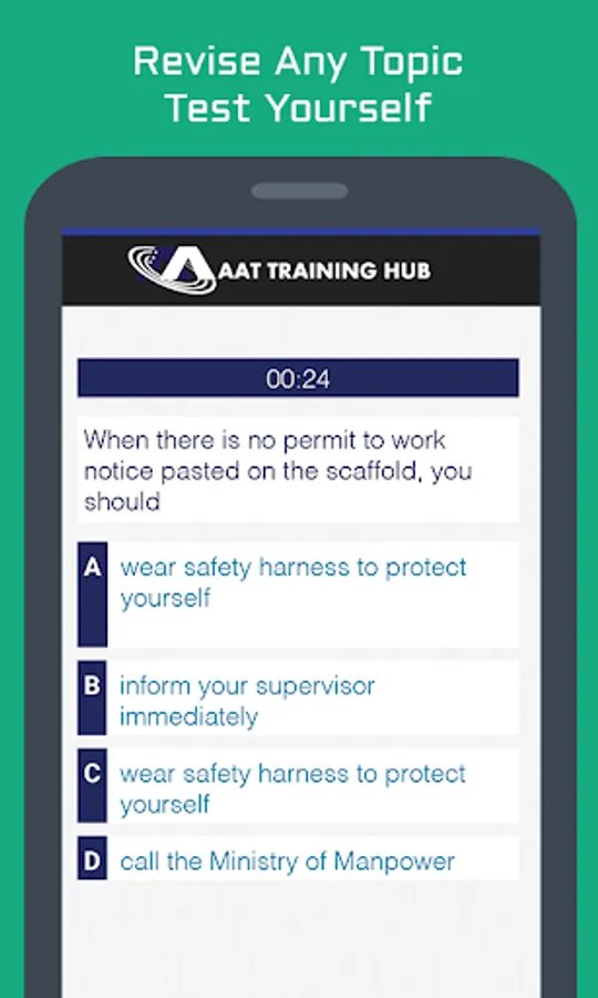 An app which has key information for learning and testing yourself on important WSH aspects in the context of Singapore and Internationally.
