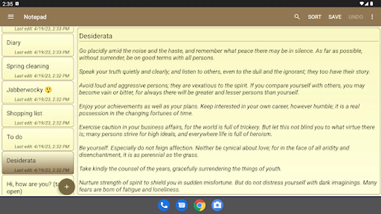 * no limits on note's length or number of notes (of course there's a limit to phone's storage)