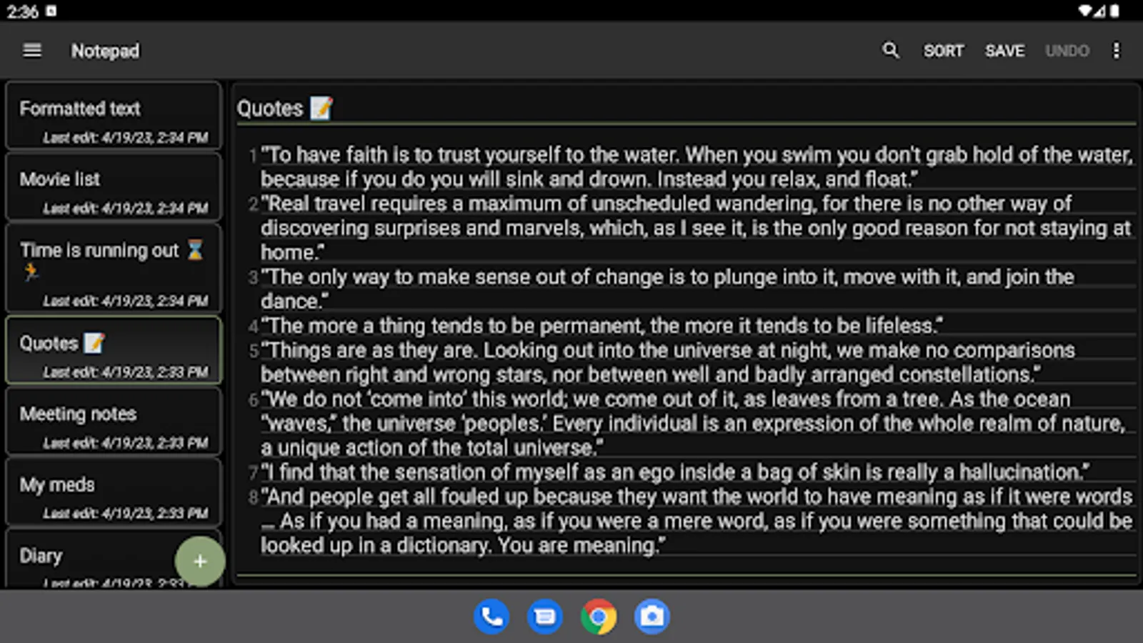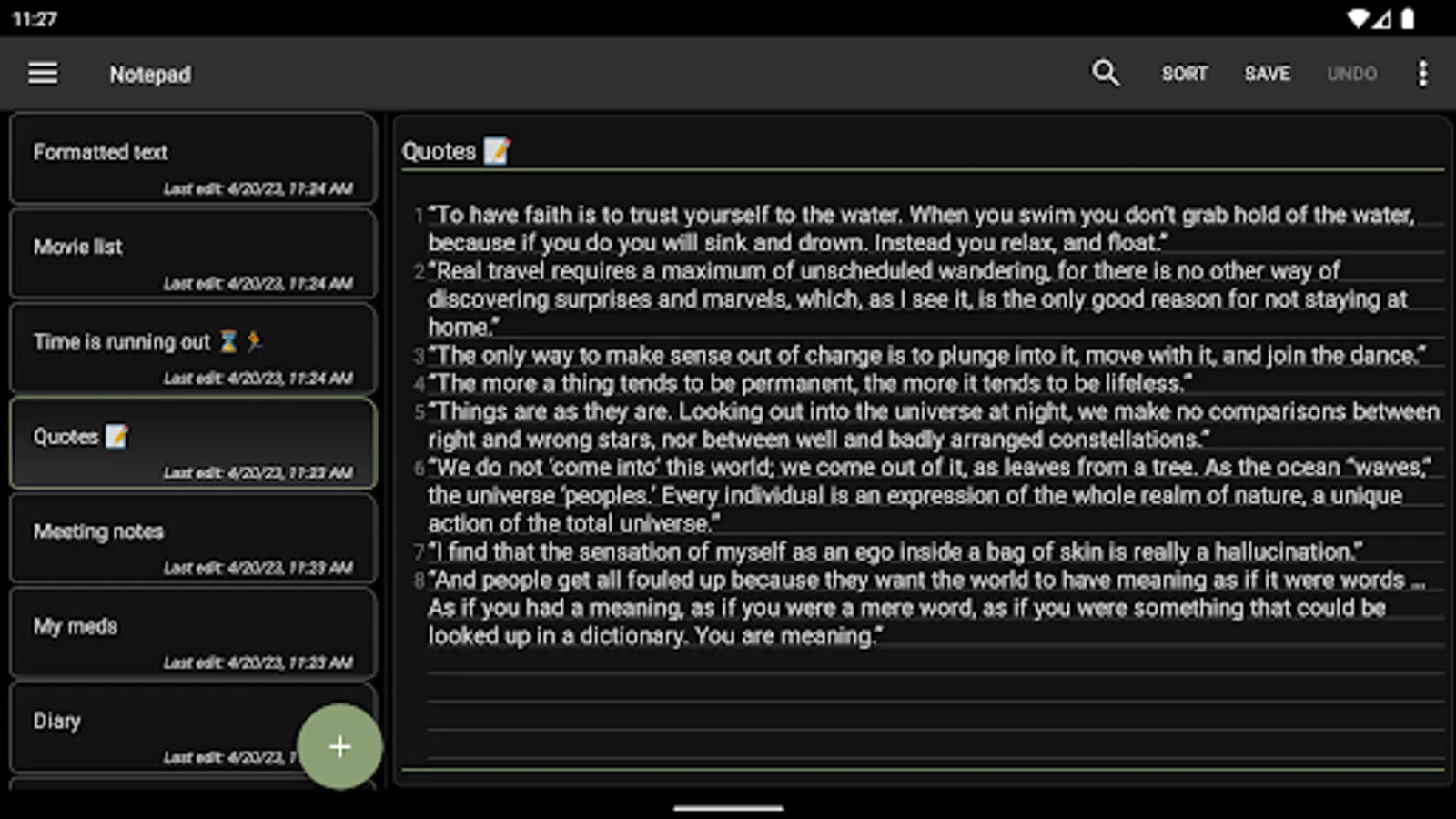 Notepad is a small and fast notetaking app for making notes, memos, or just any plain text content. Features: