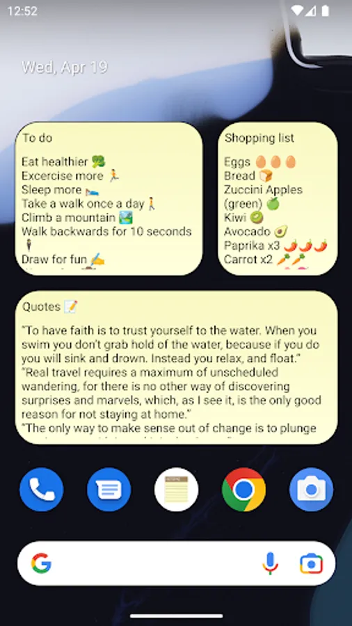 * notes widget allowing to quickly create or edit notes, working like post it notes (stick a memo to home screen)