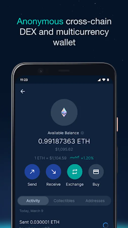 • You're in control: Private keys are kept encrypted on your mobile wallet. Cross-blockchain transactions are carried out using Atomic Swaps.
