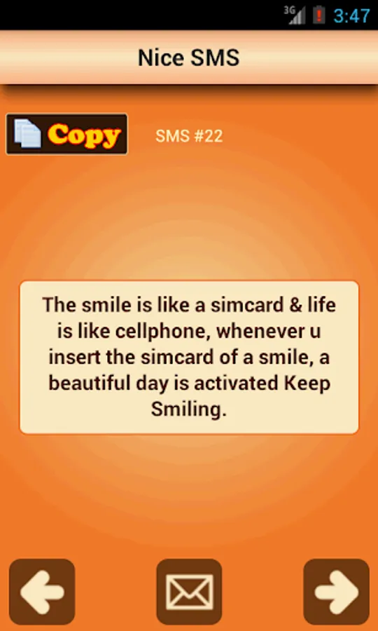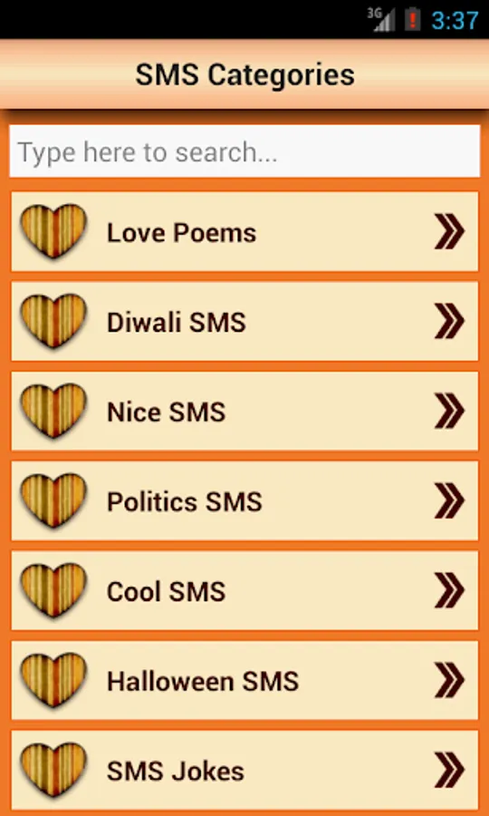 - About 50+ sms collection categories like friendship, sad love, romance, funny jokes, birthday, shayari, morning wishes, good night sms.