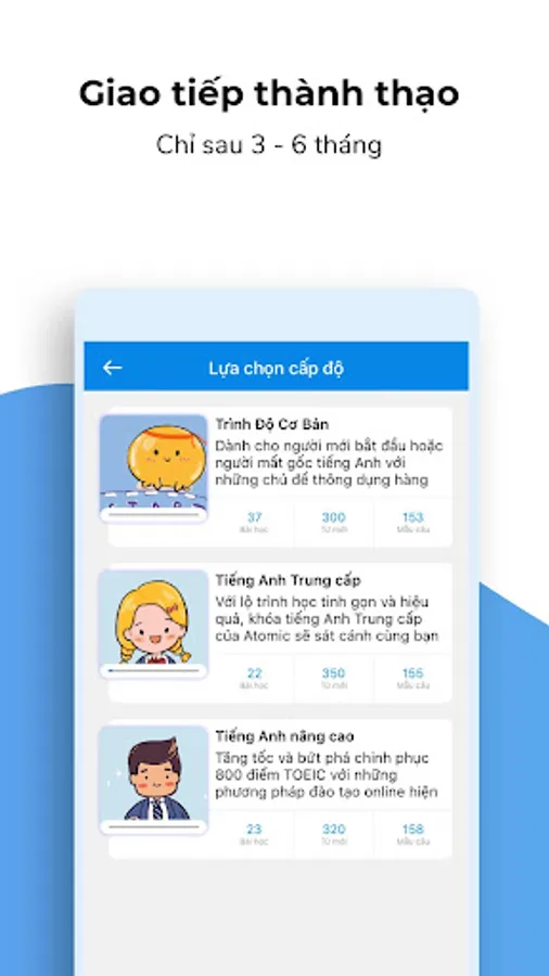Atomic is an extremely intuitive, lively and effective learn English application on smartphones. The application not only helps you improve your English communication quickly, but also supports learning, research, tourism, study abroad, labor export ...