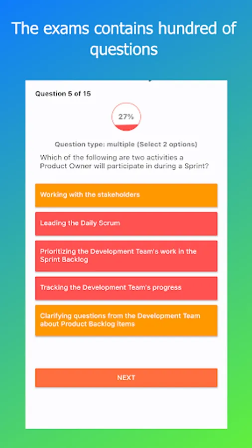 All the test content on the Scrumdemy app are curated by Scrum experts. You will have the best questions content to improve your skills to become a certified scrum professional. Scrum tests are useful for all project managers or those who aspire to build a career in scrum roles.