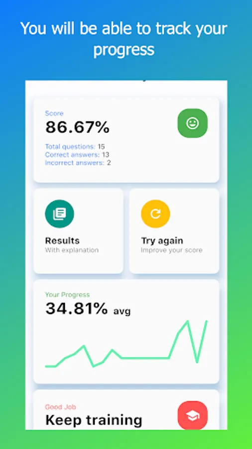 You can take different kinds of scrum certifications or examinations on the Scrumdemy app. As you take the exams, you will be able to track a summary of your progress directly on the app. You will know which areas you need to improve on to improve your Scrum Knowledge and to become a Scrum professional.