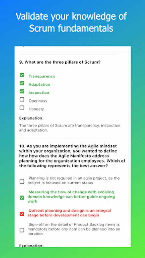 Detailed explanations on each question will enhance your Scrum Guide knowledge
