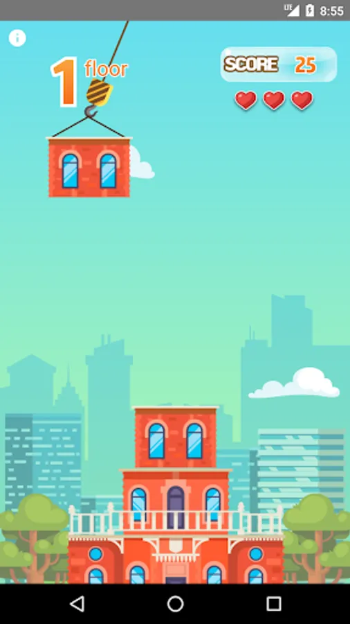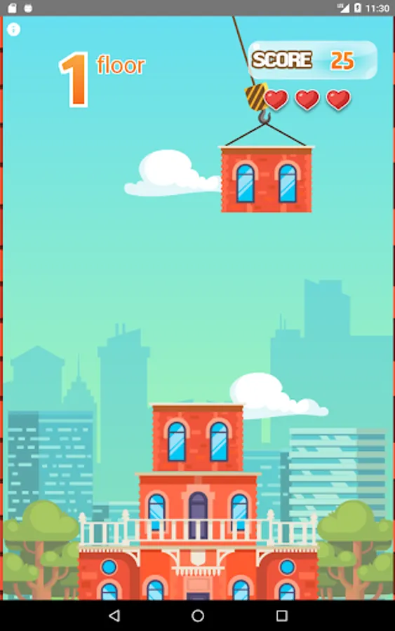 In every game player starts with 3 hp. Every time a Tower block is dropped player is deduct ed1 hp; game ends when hp is depleted.