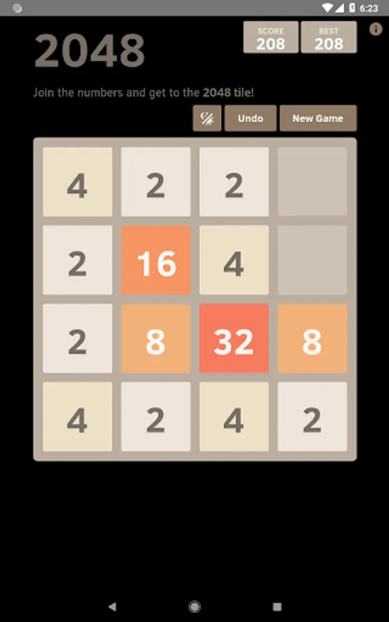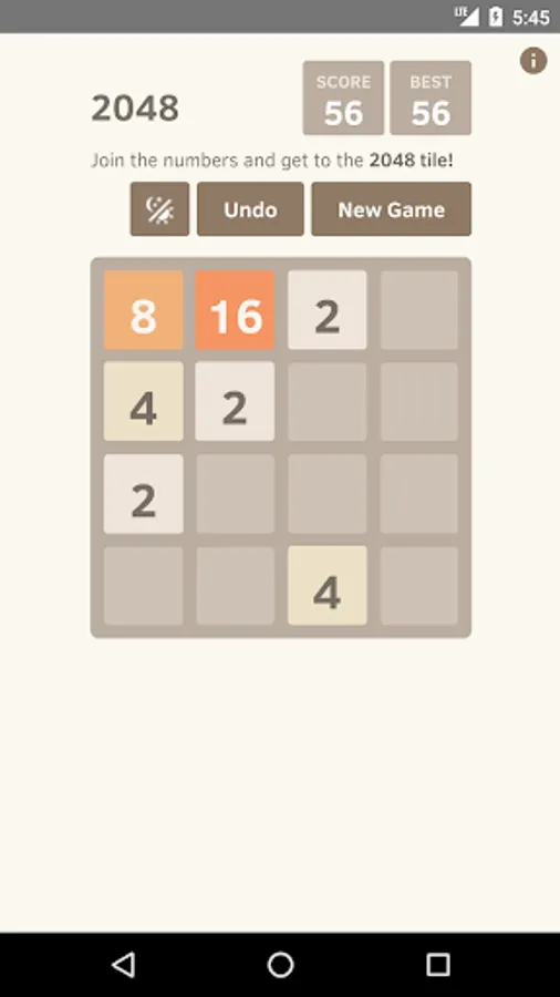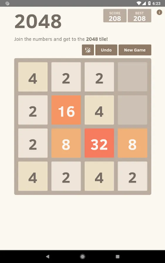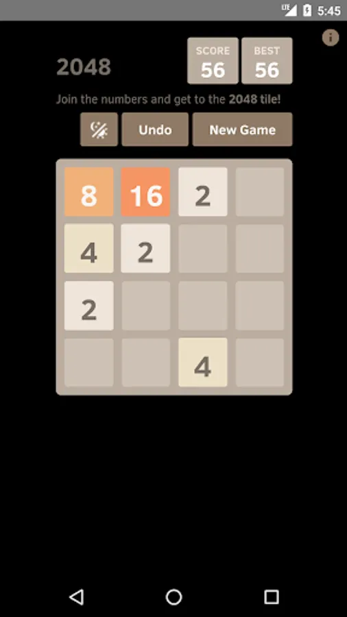 2048 is played on a gray 4×4 grid, with numbered tiles that slide smoothly when a player moves them. Every turn, a new tile will randomly appear in an empty spot on the board with a value of either 2 or 4. Tiles slide as far as possible in the chosen direction until they are stopped by either another tile or the edge of the grid. If two tiles of the same number collide while moving, they will merge into a tile with the total value of the two tiles that collided.