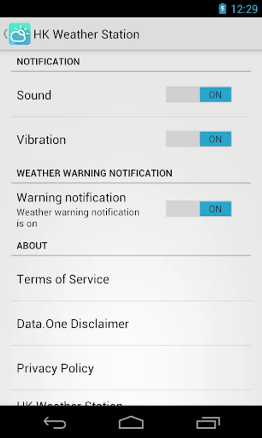 A server is specially setup for this app to provide weather warnings notifications (can be enabled in app settings), you can now receive weather warnings without opening the app.