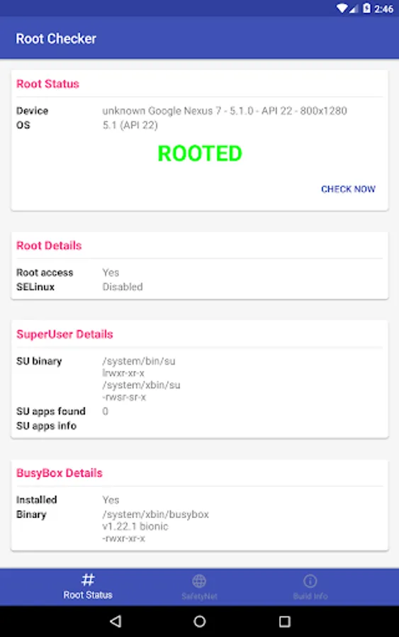 This free Root and SafetyNet Checker will let you know if your device is Rooted and checks if it passes SafetyNet.