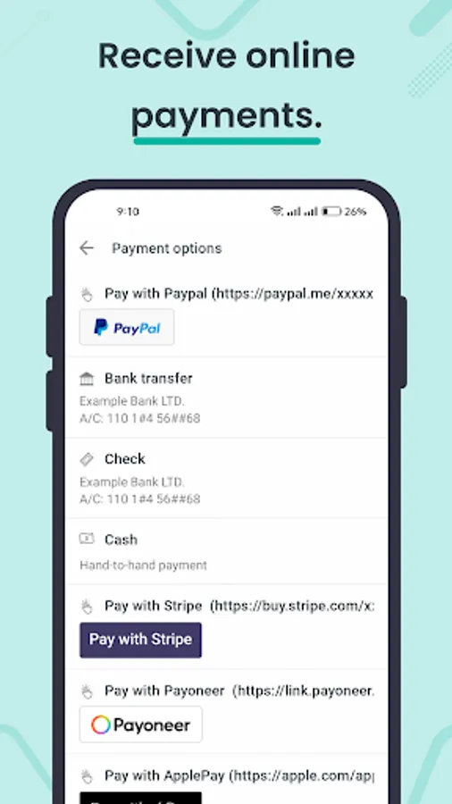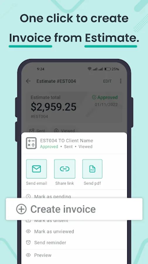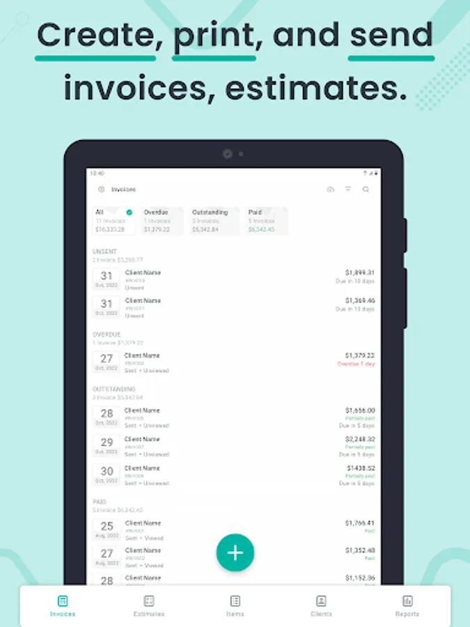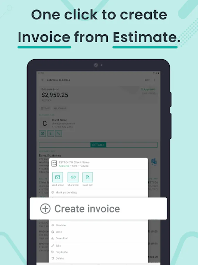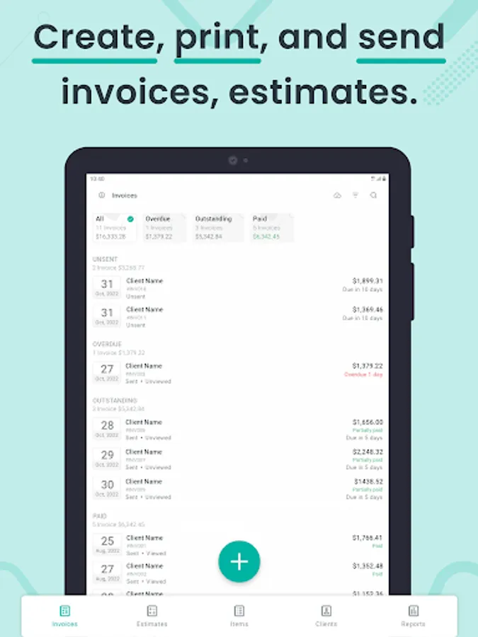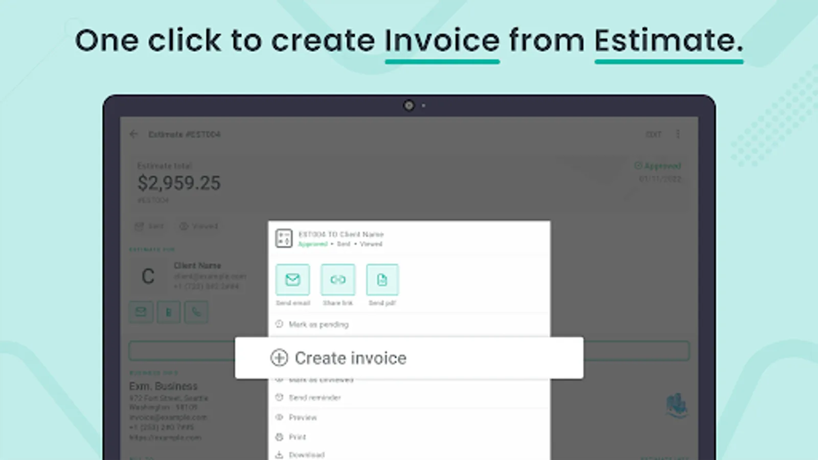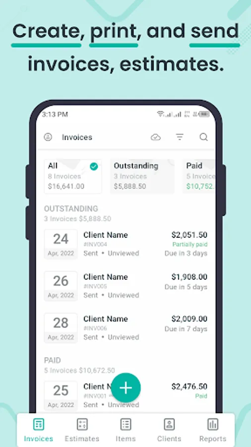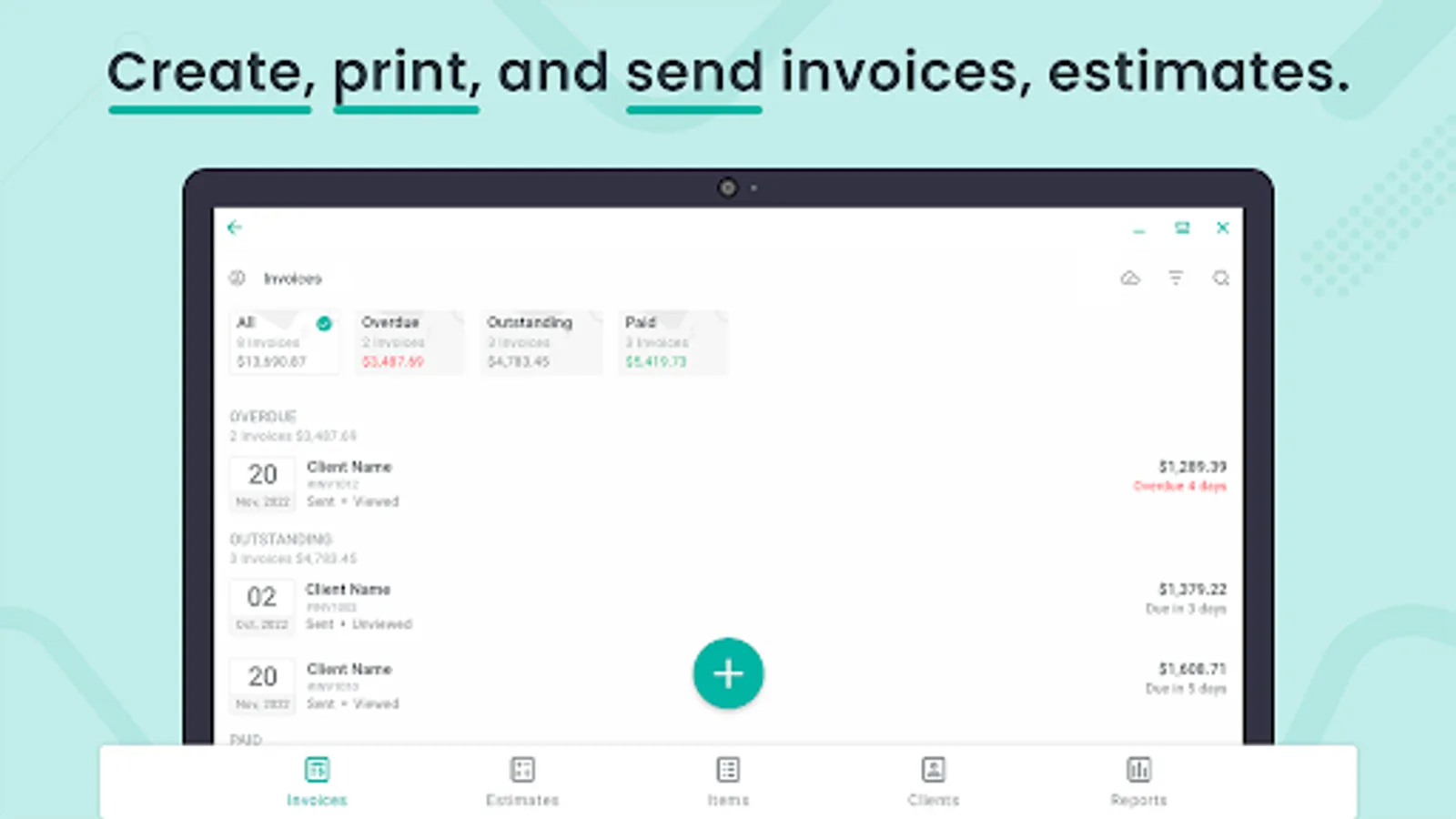This simple invoice maker app makes invoicing, estimating, and billing easy. You can create an invoice, sales bill, or estimate and send it to your client within a few seconds. Track invoices, get live notifications, and generate invoice reports. Generate invoices or simple bills from estimates faster!