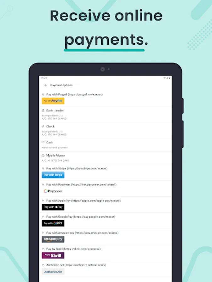 Using this online invoice generator app, offer your customers multiple payment options like PayPal, Stripe payment, Square payment, Paychex, Yap, Card, Bank transfer, ACH, etc. This cloud invoicing software has tons of custom invoice templates ready. Not only make invoices but also customize your business invoice template.