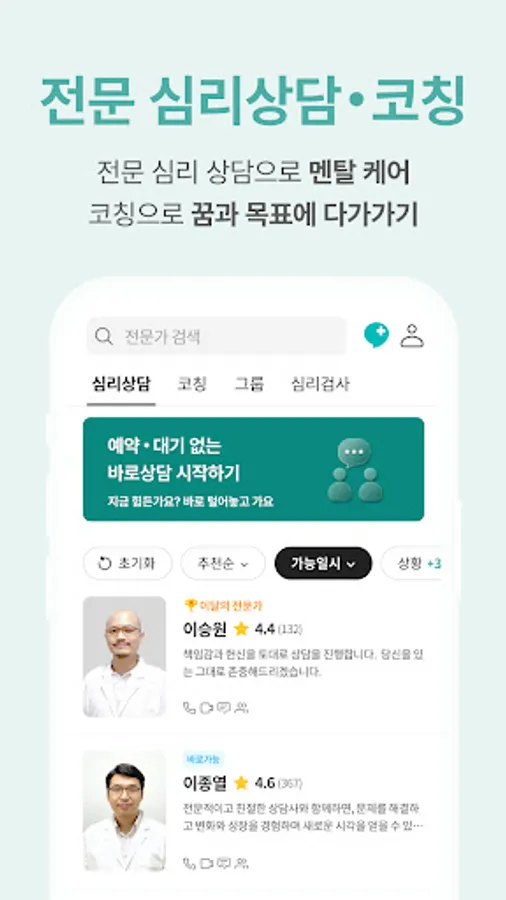 Master's/PhD education, official qualifications, experience. You can conduct psychological counseling and coaching with the best mind cafe experts in Korea who have proven all three of these.